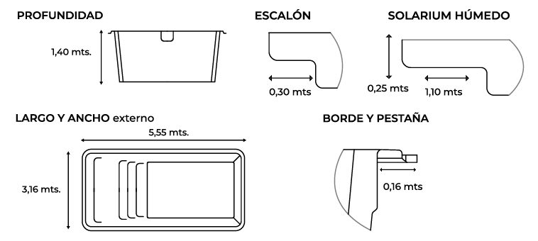 Largo y Ancho: 5,55 mts. X 3,16 mts.